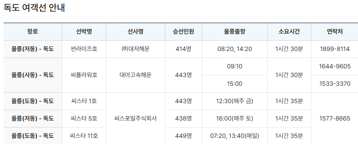 물론 우등석이 조금 더 편안한 좌석일 수는 있지만, 제가 직접 경험해본 결과 일반석과 우등석의 큰 차이는 없었습니다. 짧은 시간 동안 배를 타는 것이기 때문에, 일반석으로도 충분히 편안하게 이동할 수 있었습니다. 오히려 일반석에 앉아 빨리 내리는 것이 독도를 조금이라도 더 둘러볼 수 있는 좋은 방법이라고 생각합니다.